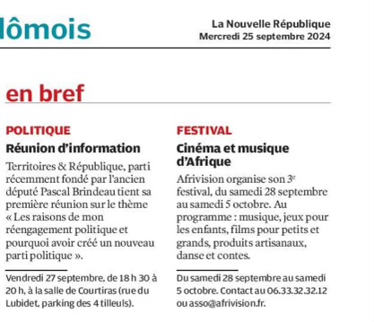 - La Nouvelle République le 25 septembre 2024 :